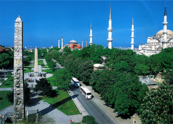 Hippodrome, center of sportive (chariot races, athletics) events and political activities of the old city. Obelisk of Theodosius, Serpentine Column, German Fountain of Wilhelm II are the monuments decorating Hippodrome.